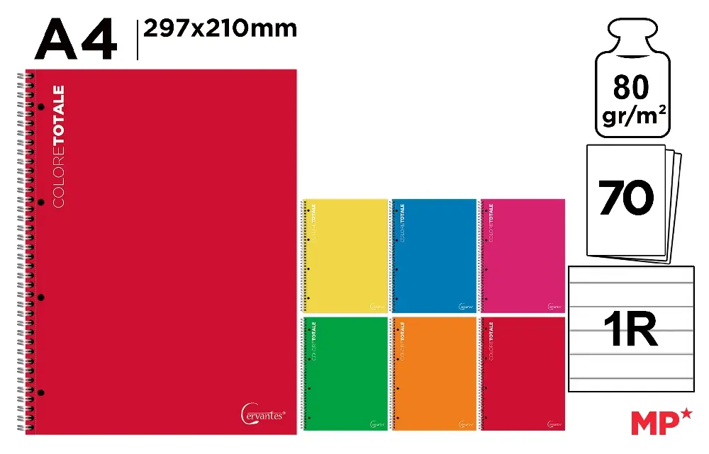 Home>MP QUADERNI CARTA E COPRIMAXI>QUADERNI SPIRALATI COP. FLESSIBILE>CERVANTES QUADERNO SPIRALE C/FORI A4 70FF/80GR 1R
