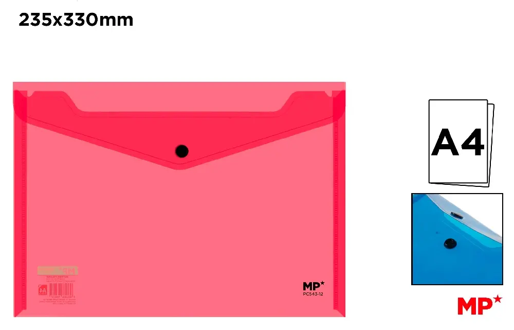 MP BUSTA TRASLUCIDA A4 CHIUSURA BOTTONE CORALLO