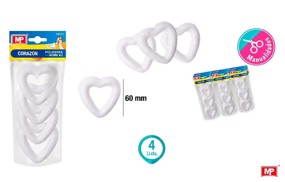 MP CUORE IN POLISTIROLO 6CM 4PZ BIANCO