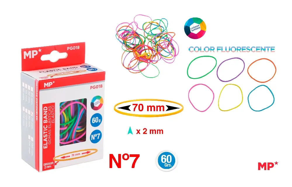 MP ELASTICI 70X2MM CONF. 60G COL. ASS. FLUO
