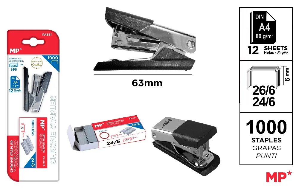 Home>MP CANCELLERIA>CUCITRICI, PERFORATORI E LEVAPUNTI>MP MINI PINZATRICE PREMIUM 26/6 24/6 + RICARICA PU