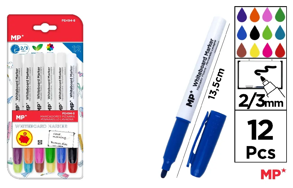 MP PENNARELLO LAVAGNA P.TONDA 2/3MM 12PZ COL. ASS.